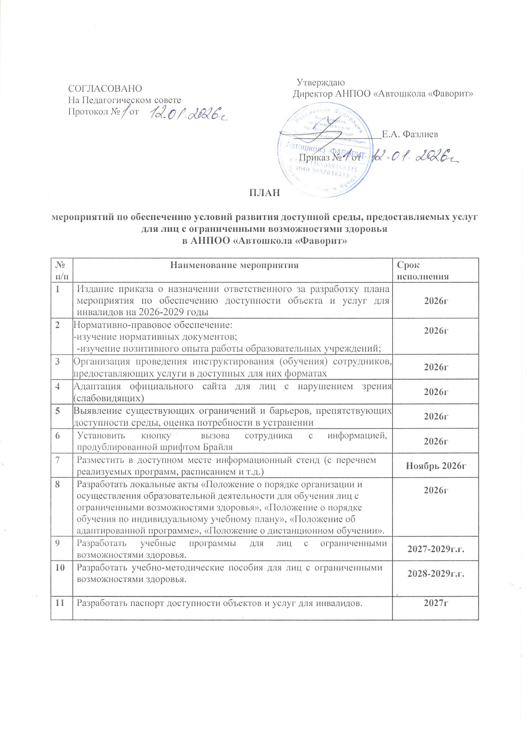 ПЛАН МЕРОПРИЯТИЙ ПО ОБЕСПЕЧЕНИЮ УСЛОВИЙ ДЛЯ ЛИЦ С ОВЗ