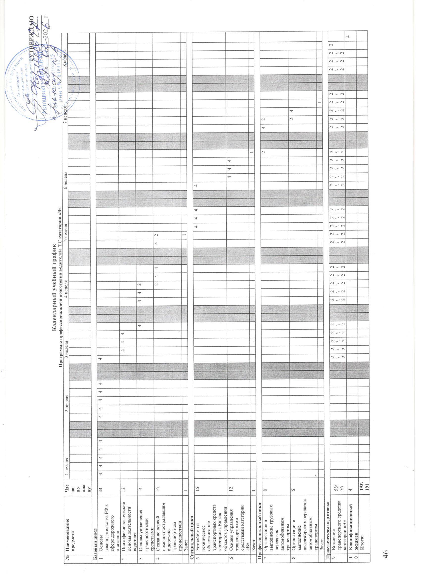 КАЛЕНДАРНЫЙ УЧЕБНЫЙ ГРАФИК ПОДГОТОВКИ ВОДИТЕЛЕЙ КАТЕГОРИИ "В"